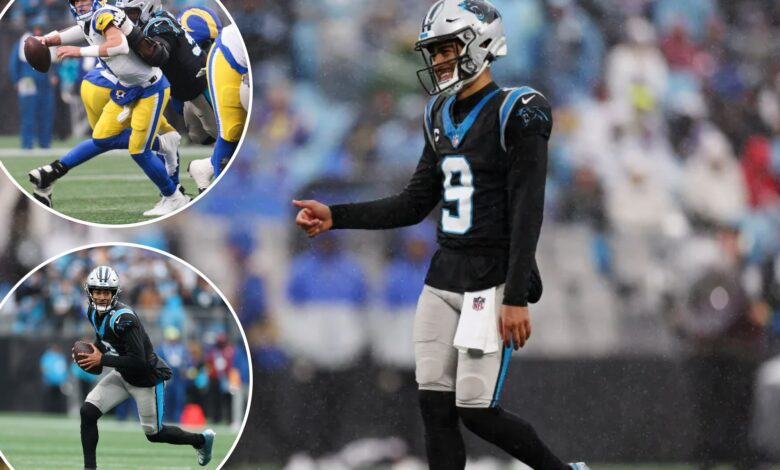 Cornerback Mike Jackson stepped in front of Puka Nacua and returned the interception 48 yards for a touchdown late in the first quarter; a seven-play, 60-yard drive earlier in the quarter ended with Stafford’s pass getting batted up in the air at the line of scrimmage and ending up in the hands of safety Nick Scott in the end zone. The Rams engineered a 10-play drive in the closing minutes that looked as if it would end with at least a game-tying field goal and perhaps more, before Derrick Brown lunged at Stafford for a game-sealing strip-sack.