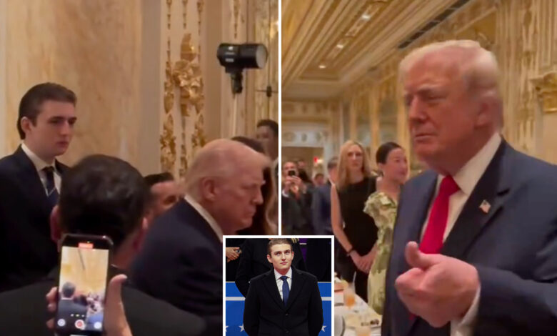 Footage of Barron Trump towering over president dad at Thanksgiving dinner goes viral
