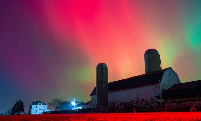 NOAA’s latest viewlines show that up to 15 northern U.S. states could see the aurora glow along their northern horizons, including Alaska, Washington, Idaho, Montana, Wyoming, North Dakota, South Dakota, Minnesota, Iowa, Wisconsin, Michigan, New York, Vermont, New Hampshire and Maine.