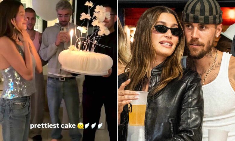 In a video shared on Monday, Nov. 24, Hailey is presented with a white cake decorated with white flowers as Justin, 31, looks on. After she blows out the candles, the “Peaches” singer is seen cheering as his wife jumps up and down with her hands in the air.