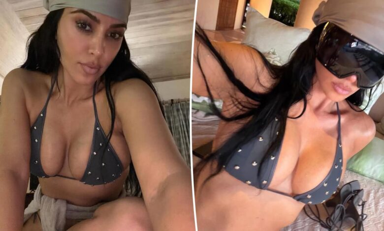 On Sunday, the reality star, 45, shared a carousel of photos that included her wearing a tiny studded bikini. The pics appear to be from her sister Kendall Jenner’s lavish 30th birthday celebration, as one pic showed off a stunning resort and balloons that read “Happy Birthday, Kendall.”