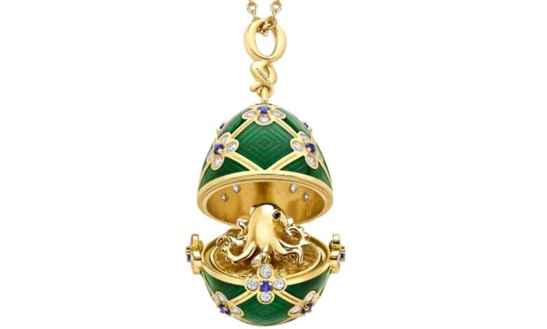 “The hand-crafted Fabergé x 007 Limited Edition Octopussy Egg Objet is limited to just 50 numbered pieces worldwide and stands at 8.4cm tall, crafted from 18ct yellow gold and hand-painted with a rich green enamel, carefully selected for its similarity to the enamel used on the Fabergé egg featured in the film Octopussy,” the description read.