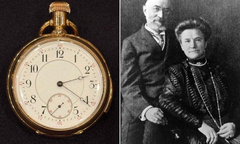 The couple died when the Titanic sank in the Atlantic Ocean on April 15, 1912, after Ida refused to leave her husband’s side. Isidor’s body was later found, and the watch was recovered from his body, according to the auction house.