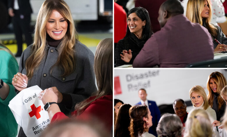 First lady Melania Trump teamed up with second lady Usha Vance to greet military families at Joint Base Andrews and create holiday care packages for service members to mark the start of the Christmas season.