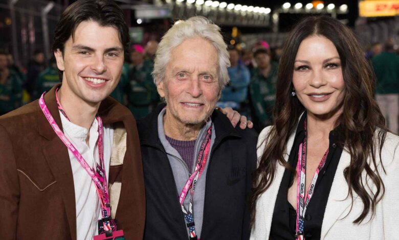 Michael Douglas and Catherine Zeta-Jones Joined by Son Dylan at Las Vegas Grand Prix