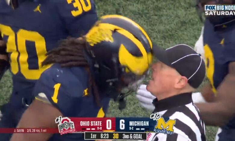 Michigan’s Jaishawn Barham appears to headbutt ref — but is not ejected from Ohio State clash