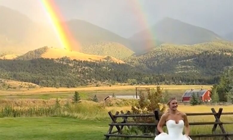 • A Montana bride got a stunning wedding surprise after a double rainbow stretched across the hills behind her wedding venue