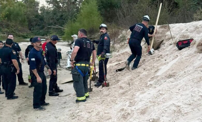 “Firefighters, medics and Montgomery County Sheriff’s Office deputies were directed to a sand bar on the West Bank of Panther Creek just south of the pedestrian bridge, where a 12-year-old girl on a family outing was trapped after a large hole she was digging in the sand collapsed, covering her completely,” the Woodlands Fire Department said.
