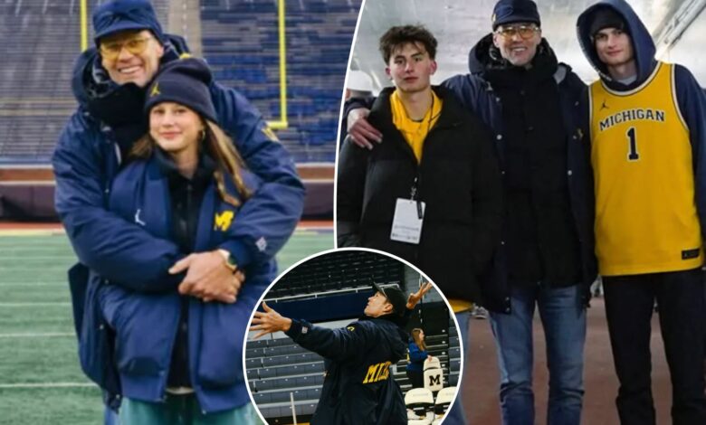 One photo shows Brady hugging Vivian while standing on the University of Michigan field, where the retired NFL star played from 1996-99. Jack and Benjamin are sporting Michigan gear at the stadium while posing with their dad in another snapshot.